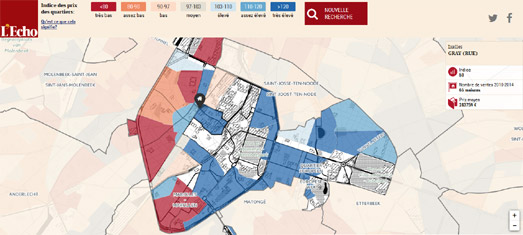 L'Echo has published an interactive map which shows the average household toll inwards all of Belgium's 19,000 neighborhoods. Using the map yous tin visualize the neighborhoods alongside the cheapest together with the almost expensive holding inwards the whole of the country.